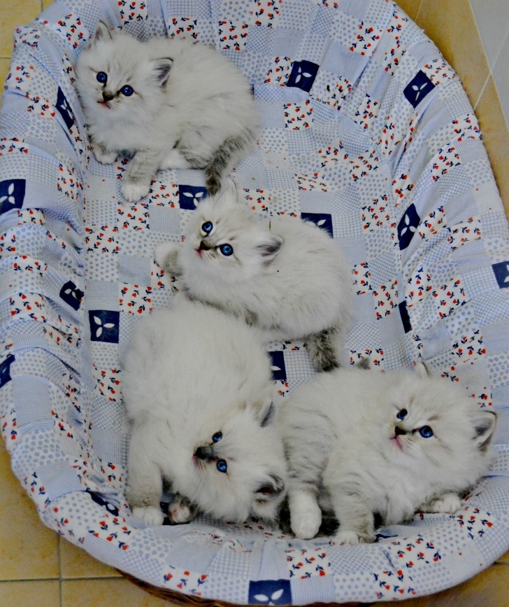 Kiara (Maple Tree Dolls Kiara Hakuna Matata) il 31/03/2012 è nuovamente diventata mamma! Con la fondamentale collaborazione di Giulietto il bellissimo stallone dell'allevamento RAGDOLLSMANIA di Francesca Beltrami. I PICCOLI SONO 4 , 2 MASCHI E DUE FEMMINE!