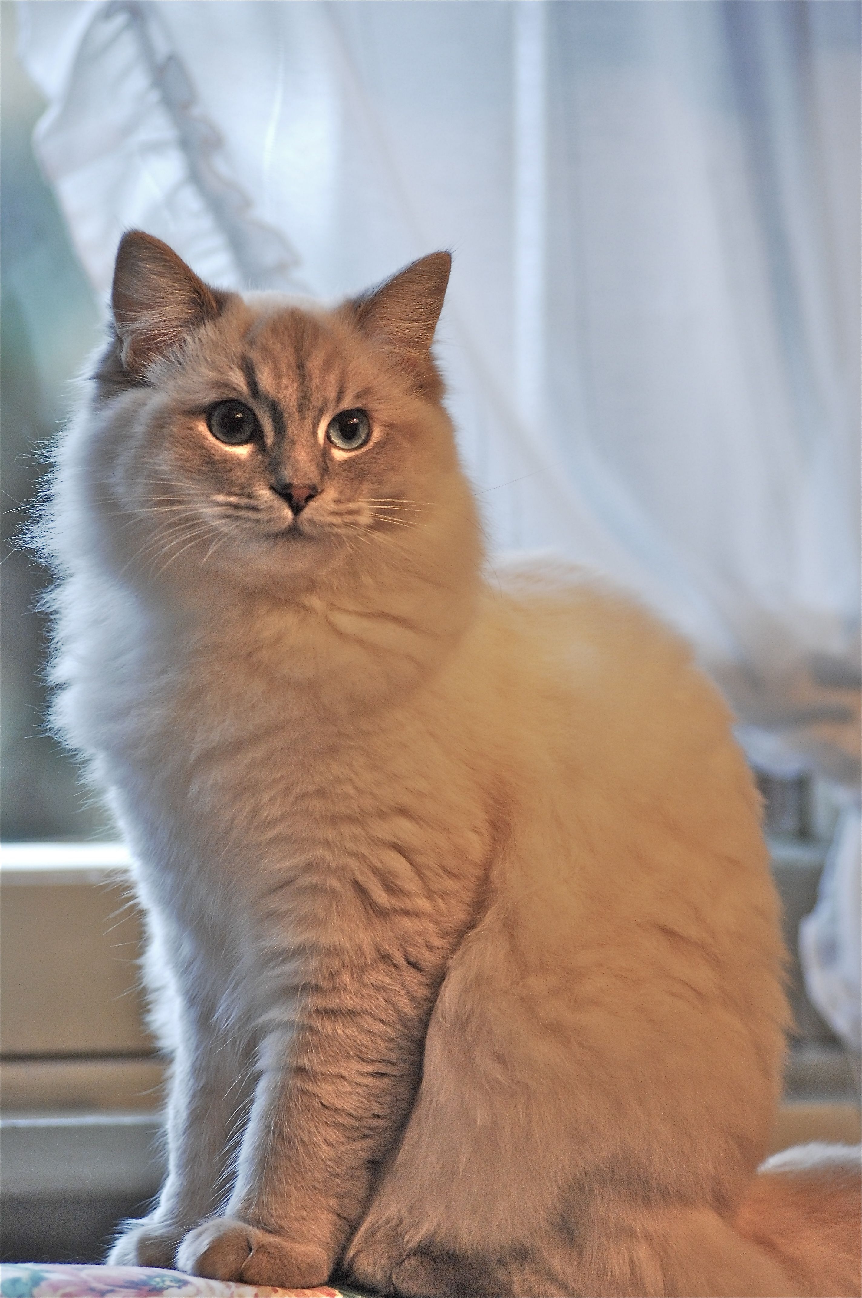 Kiara è la terza fattrice che abbiamo tenuto: è sempre nata in casa. Figlia di Grace e di Omer , un blue tabby point campione di bellezza di proprietà di Jaqueline della Croce (Allevamento Nicedolls CH).
